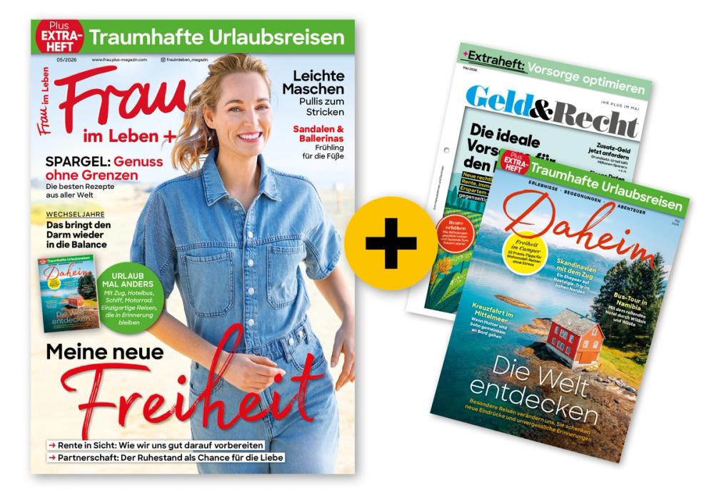 Frau im Leben begeistert jeden Monat praktisch und kompetent mit diesen Themen: Fit & Gesund, Essen & Genießen, Mode & Beauty, Wohnen & Erleben u.v.m.