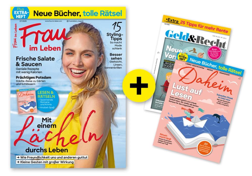Frau im Leben begeistert jeden Monat praktisch und kompetent mit diesen Themen: Fit & Gesund, Essen & Genießen, Mode & Beauty, Wohnen & Erleben u.v.m.